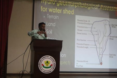 दिनांक 8 सितम्बर 2025 को उत्तराखण्ड वानिकी प्रशिक्षण अकादमी, हल्द्वानी के नैन सिंह ऑडिटोरियम में श्री रूप सिंह राणा द्वारा वाटरशेड प्रबंधन एवं चाल-खाल निर्माण विषय पर विशेष सत्र आयोजित किया गया। इस दौरान चाल-खाल की भूमिका जल संरक्षण, भूमि की उर्वरता एवं प्राकृतिक संसाधनों के सतत प्रबंधन में महत्वपूर्ण बताई गई। कार्यक्रम में उपनिदेशक श्री सूरज तिवारी सहित वरिष्ठ अधिकारी एवं प्रशिक्षण प्राप्त कर रहे वन आरक्षी उपस्थित रहे।